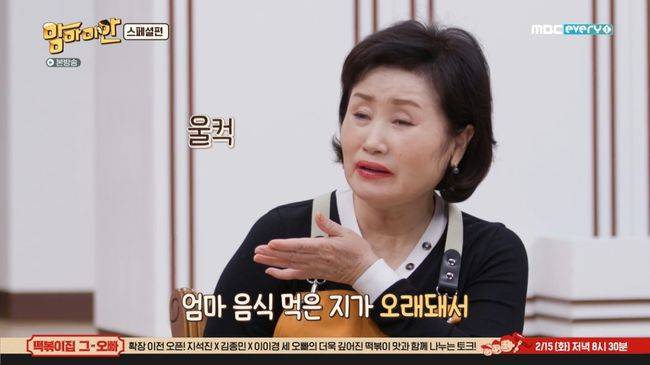 이후 게스트들은 엄마의 요리에 대한 생각을 밝혔다. 고은아는 "추억"이라고 답했으며 김동현은 "내가 경기에서 이길 수 있는 비결"이라고 답했다. 서지석은 "듣기만 해도 엄마가 생각난다"라고 말했으며 김자인 선수는 눈물을 그렁거리며 "지금의 김자인을 만들어 낸 펀치"라고 답을 해 감동을 주었다./osen_jin0310@osen.co.kr
