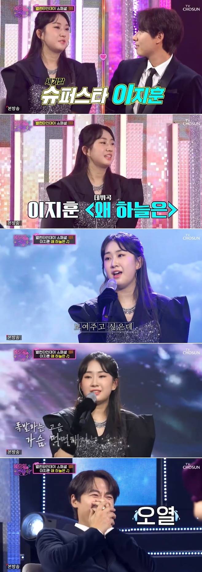 한편 홍지윤과 전유진은 애절한 보이스로 '왜 하늘은'을 소화해 박수를 받았다.(사진=TV조선 '화요일은 밤이 좋아' 방송 캡처)