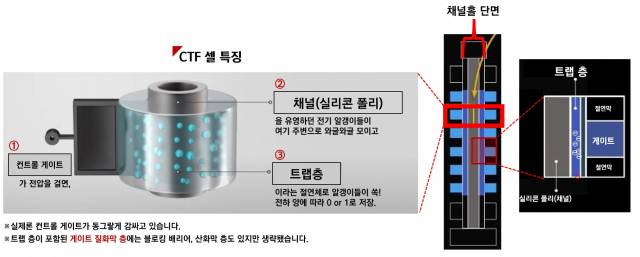 김 부사장은 미래 낸드플래시 기술을 짚으면서 공정에 활용되는 '소재' 혁신의 중요성을 강조했습니다. 그는 '트랩층' 소재 혁신이라는 이야기를 했는데요.