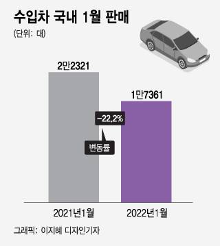 수입차 판매도 크게 줄었다. 한국수입자동차협회(KAIDA)는 1월 수입 승용차 신규등록대수가 1만7361대로 집계됐다고 발표했다. 전달인 지난해 12월보다 27.4%, 지난해 같은 기간보다는 22.2% 줄어든 양이다.