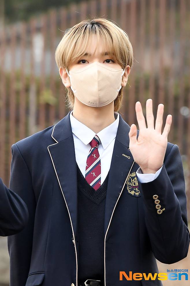 이펙스 멤버 금동현과 뮤가 2월 11일 오전 서울 송파구 장지동에 위치한 한림연예예술고등학교에서 열린 제 11회 졸업식에 참석하기 위해 모교로 들어서고 있다.