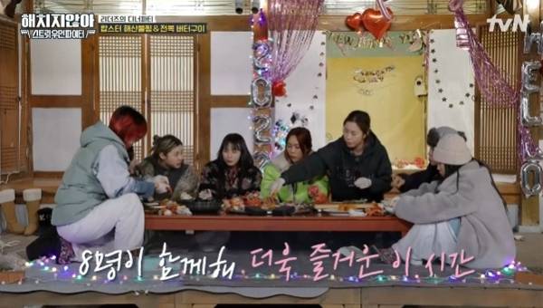 그리고 tvN은 알뜰살뜰 살림9단 주부처럼 <펜트하우스>의 스핀오프인 <해치지 않아>를 다시 한번 스핀오프했다. <해치지 않아>의 세계관을 빌려와 엠넷 <스우파> '리더즈'들이 <해치지 않아>의 촬영지로 여행을 떠났다. 사실 <해치지 않아 X 스우파>에는 <스우파>의 리더들이 출연한다는 것 이외에 새로움은 특별히 찾을 수 없다. 드라마의 세계관을 가져온 <해치지 않아>보다는 친구와 같은 동료들끼리 시골마을 어느 집에 방문해 하룻밤 같이 밥을 해먹고 게임을 하는 SBS <불타는 청춘>과 유사하다.