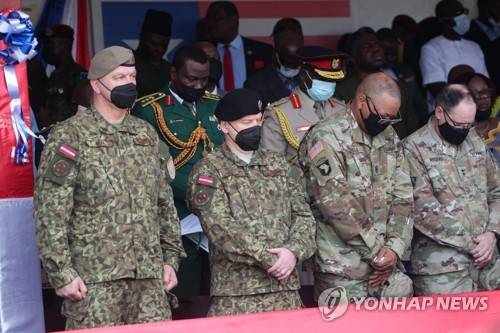 epa09748219 US Army officers attend 65th Armed Forces day celebration at the Barclay Training Center in Monrovia, Liberia, 11 February 2022. The government of Liberia, declared Armed Forces Day on 11 February every year in celebrations of the Men and Women in arms defending its territorial sovereignty. EPA/AHMED JALLANZO