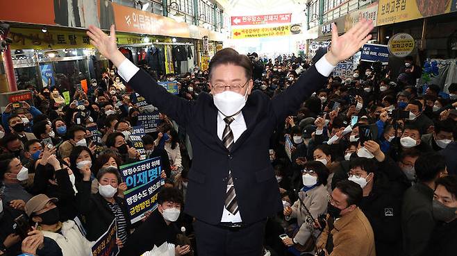 이재명 후보는 오늘(12일) 세종특별자치시 전통시장을 찾아 시민들을 만나고 즉석 연설을 했습니다.