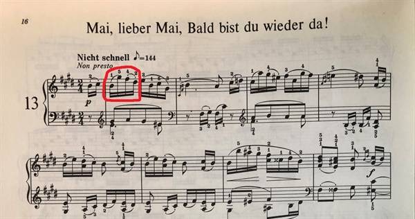 | ▲ 슈만 어린이를 위한 앨범 Op.68 No.13 제목 ‘Mai, lieber Mai, bald bist Du wieder da!’는 ‘5월이여, 이제 곧 오는구나!’라는 뜻이다. |