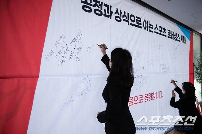 강인덕 전 인천시체육회장은 선대본 직능본부 전국 체육위원 26만9502명을 대표한 지지선언문을 통해 "문재인 정권은 체육계를 편가르기 하고 탁상공론식 체육정책으로 체육을 망가뜨렸다"면서 스포츠 르네상스를 위한 정권 교체의 당위성을 역설했다.
