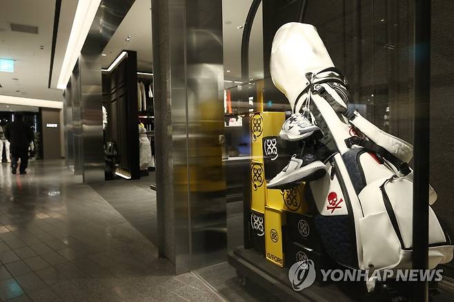 (서울=연합뉴스) 진연수 기자 = 골프 인기가 계속되면서 비수기인 겨울에도 관련 상품 매출이 늘고 있다. 16일 롯데백화점에 따르면 골프 비수기인 지난해 11월과 12월의 골프 상품군 매출은 전년 같은 기간 대비 37.4%, 57.3% 증가했다. 올해 1월에는 본격적인 골프철이 다가오면서 매출이 65.8% 증가했다. 특히 골프용품 중에서도 캐디백과 보스턴백, 골프파우치 등을 아우르는 골프백의 1월 매출은 30% 정도 증가했다. 사진은 이날 서울 중구 롯데백화점에서 판매 중인 골프백. 2022.2.16