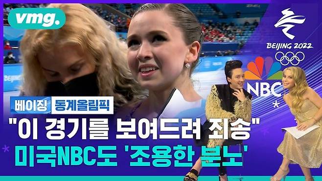 미국 올림픽 독점 중계권을 가진 NBC의 해설자 타라 리핀스키와 조니 위어도. 어제(15일) 발리예바의 쇼트프로그램 경기를 중계하며 우리 중계진과 마찬가지의 대응으로 조용한 분노를 표시했습니다.