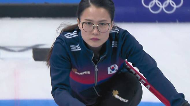 16일 베이징 국립 아쿠아틱 센터에서 열린 2022 베이징동계올림픽 여자 컬링 예선 8차전 대한민국과 덴마크와의 경기에서 팀 킴이 8엔드에 1점을 획득했습니다.