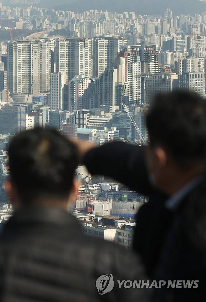 (서울=연합뉴스) 진연수 기자 = 거래 가뭄 속에 고가 아파트가 몰린 서울 강남구와 용산구 아파트값도 하락 전환되는 등 서울 아파트 가격이 4주 연속 약세를 기록했다. 17일 한국부동산원 조사에 따르면 이번주 서울 아파트값은 0.02% 떨어지며 지난주(-0.01%)보다 낙폭이 커졌다. 이번주 서울 25개 구 가운데 중랑구(0.01%)를 제외한 24개 구의 아파트값이 하락 내지 보합을 기록했다. 대출 규제, 금리 인상, 집값 고점 인식 등으로 거래량이 급감한 가운데 일부 싼 매물 위주로만 팔리며 실거래가 하락 단지가 증가하는 모습이다. 사진은 이날 서울 남산에서 바라본 시내 아파트 단지의 모습. 2022.2.17