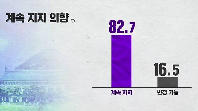 현재 지지하는 후보에 대해서는 82.7%가 '계속 지지'하겠다고 답했습니다.