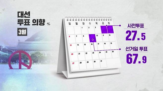 다음 달 4~5일 사전투표하겠다는 응답은 27.5%, 선거일 당일 투표는 67.9%였습니다.