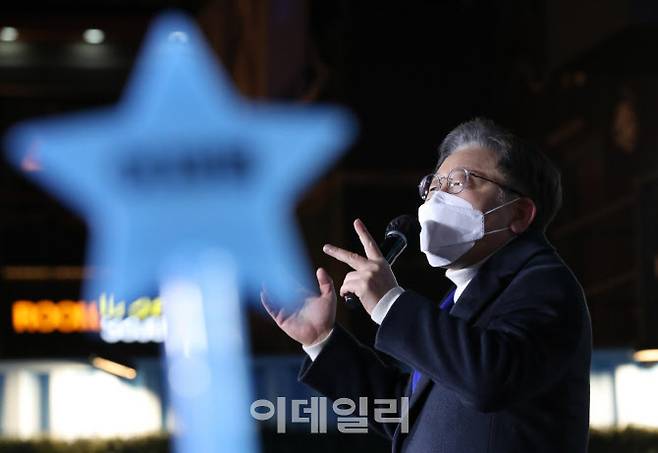 [이데일리 노진환 기자] 이재명 더불어민주당 대선 후보가 17일 오후 서울 마포구 홍대 상상마당 앞에서 ‘이제는 청년이다! 청년기회국 유세’를 하며 시민들에게 지지를 호소하고 있다.