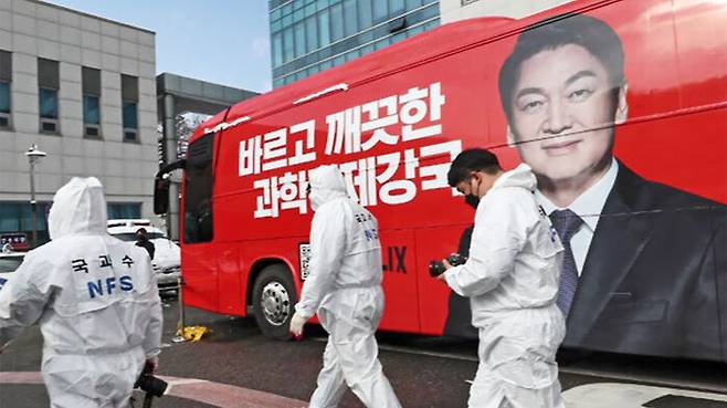 이들은 일산화탄소 생산·배출 요인으로 지목된 LED 전광판 전원 공급용 발전기를 안철수 후보 측 차량에 설치한 것으로 알려졌습니다.