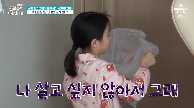 다음날도 집에 있던 두 아이는 머리를 뜯고 싸워 엄마를 골치 아프게 했다. 신기한 건 엄마가 없을 때보다 있을 때 둘이 더 싸운다는 것. 결국 엄마는 우경이 편을 들었고, 속상한 서윤도 봉지를 뒤집어쓰더니 "나 죽고싶어서 그래. 나도 억울해. 왜 우경이만 오냐오냐해?"라고 말했다.