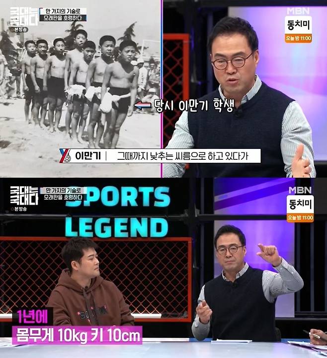 전 씨름선수 이만기가 신장에 구애받지 않는 넓은 스펙트럼의 씨름 기술을 자랑했다.