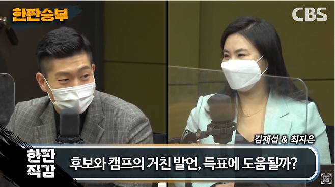 ◆ 김재섭> 이재명 후보는 네거티브 안 한다고 하셨는데 하는 거 보니까 요새는 진짜 네거티브 안 한다고 했던 말이 4년쯤, 5년쯤 된 얘기처럼 요새는 많이 하시는 것 같은데. 저도 개인적으로는 이게 막판에까지 지금 20일도 채 남지 않은 상황에서 막판까지 누구를 찍어야 될지 모르시는 그다음에 아직 결정을 못하신 분들 같은 경우에는 그래도 후보의 정책이라든지 이런 거 비호감도가 좀 그러니까 호감도가 덜 나은 사람들. 조금 더 호감이 있는 사람들을 뽑게 되는데, 이런 거친 말을 하게 되면 그 표가 도망가게 되죠.