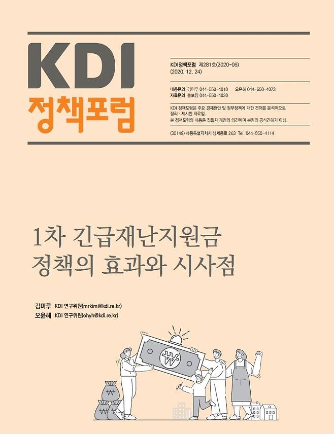 대표적인 게 국책연구기관인 한국개발연구원(KDI)이 2020년 12월 발표한 '1차 긴급재난지원금 정책의 효과와 시사점'입니다. 1차 재난지원금은 그해 5월 '소멸성 지역화폐(또는 카드 포인트)' 방식으로 전 국민에게 지급됐습니다.