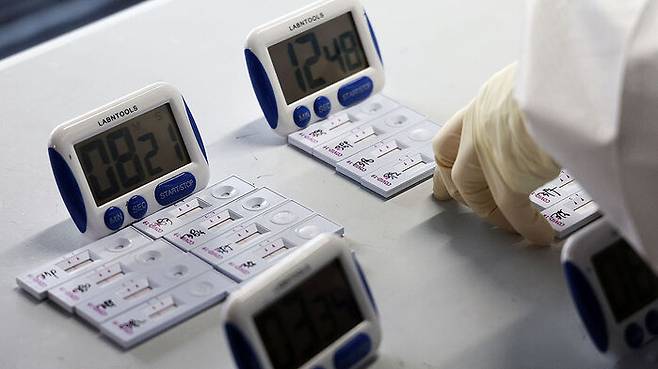 자가검사키트는 검사자 본인이 콧속 1.5∼2㎝ 깊이로 면봉을 넣어서 코 점막에 있는 검체를 채취해 검사합니다. 반면, 같은 신속항원검사라도 전문가용 신속항원검사는 전문가가 PCR 검사처럼 거의 5∼6cm 깊이의 코와 목 뒤쪽 점막 부분에까지 면봉을 넣어 검사합니다. 보건소 선별진료소나 호흡기전담클리닉, 동네 병·의원에서 받을 수 있는데, 이런 전문가 검사의 민감도가 50%에 이르는 반면, 자가검사는 20% 미만이라는 게 진단검사의학회 설명입니다.