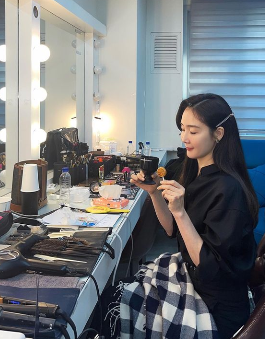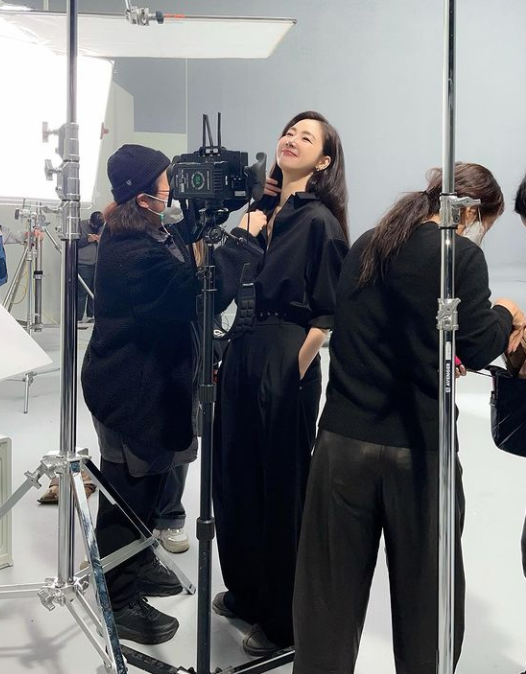 사진 속 최지우는 스튜디오에서 광고 사진 촬영 준비에 한창이다.