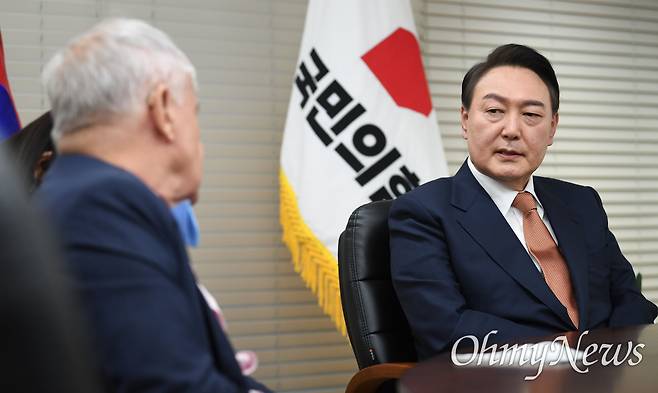 | ▲ 국민의힘 윤석열 대선후보가 24일 서울 영등포구 당사에서 짐 로저스 로저스홀딩스 회장과 면담하고 있다. |