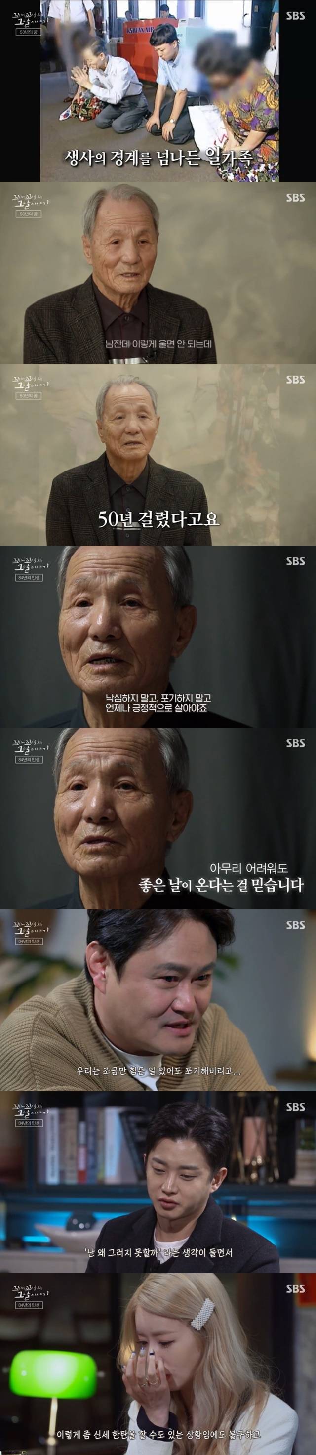 올해로 84살인 문충일 씨는 “제가 능력이 없다. 힘도 못 쓰고. 어떻게 그런 용기가 생겨서 고비마다 사람들이 도와주고. 오랜 세월 포기하지 않고 왔더니 좋은 일이 있었다. 포기하지 말고 열심히 살면 아무리 어려워도 좋은 날이 온다고 믿는다”고 희망의 메시지를 전했다. (사진=SBS ‘꼬리에 꼬리를 무는 그날 이야기’ 캡처)