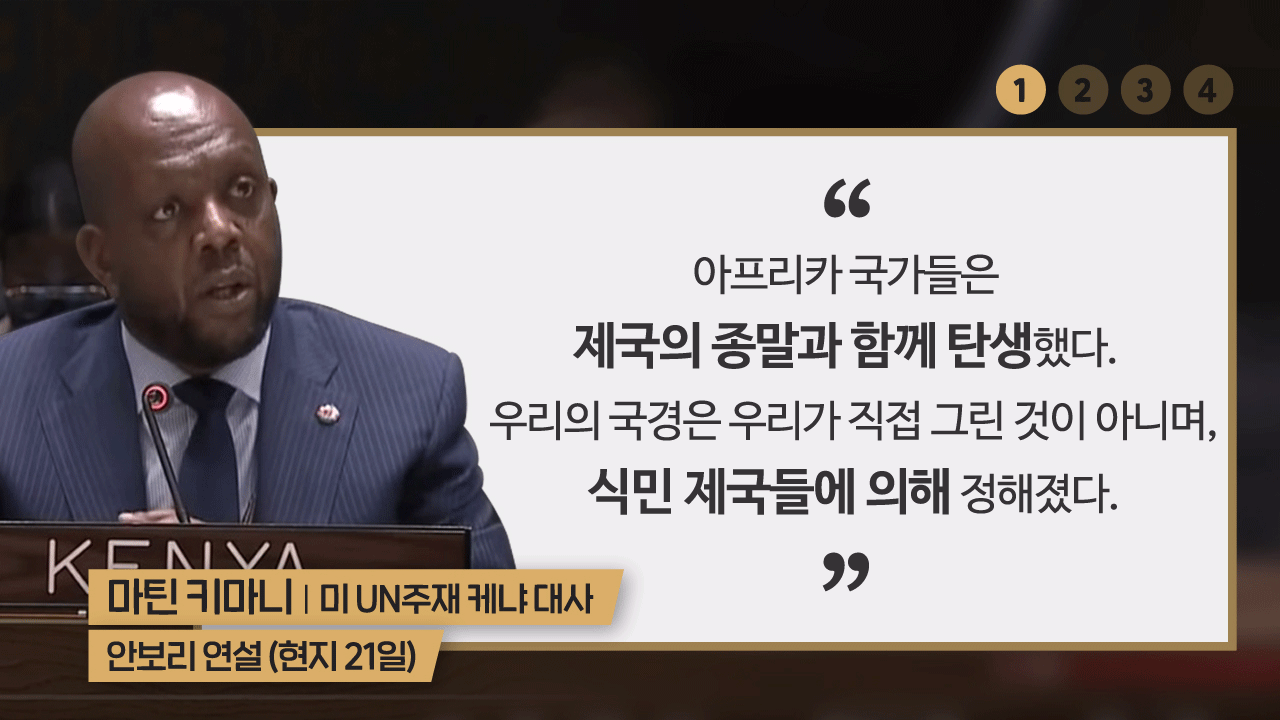 1) 아프리카 국가들은 제국의 종말과 함께 탄생했다. 우리의 국경은 우리가 직접 그린 것이 아니며, 저 멀리 제국의 수도에서 원래의 나라들과 무관하게 그어졌다.