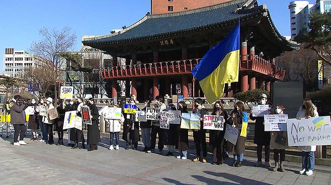 한국에 거주하는 러시아인들도 서울 보신각 앞에서 전쟁 규탄 집회를 열었습니다.