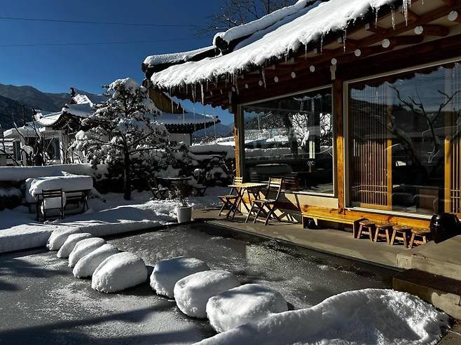 속초에 작게 자리한 한옥마을의 초입에 있는 카페 ‘도문’. 낮은 처마와 시선 끝에 걸리는 얕은 연못이 고요한 운치를 주는 도문은 한국적인 멋을 지닌 공간이다. 도문이 있는 마을을 아늑하게 감싸는 듯한 설악산 뷰는 이곳의 또 다른 백미. 이곳에서는 쌀로 만든 휘낭시에 디저트와 전통 식혜인 ‘감주’도 맛볼 수 있다고. 겨울에 향긋하게 어울리는 새로운 메뉴도 꼭 도전해볼 것. 백차를 베이스로 에스프레소 샷과 우유를 섞은 새로운 '화이트티 라떼'는 은은한 복숭아의 달콤한 향이 매력이다.
