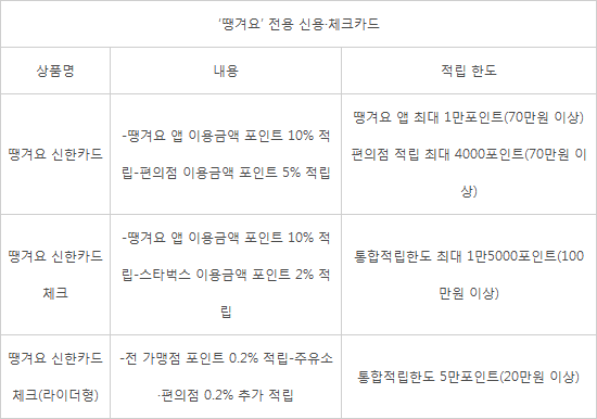 신한카드는 이날 배달 앱 '땡겨요' 전용 신용·체크카드, 라이더 대상 체크카드 등 총 3종의 카드 상품을 출시했다.