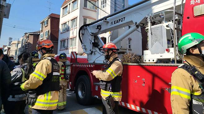소방은 A씨의 투신에 대비해 건물 주변에 안전 매트를 설치했습니다.