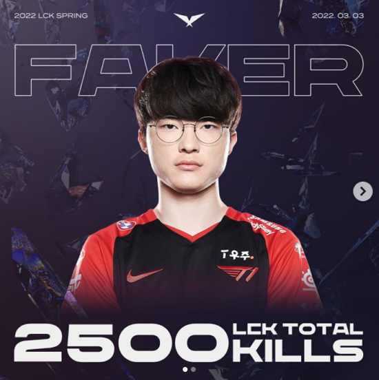 (엑스포츠뉴스 최지영기자) '페이커' 이상혁이 LCK 최초 2500킬을 넘어섰다.
