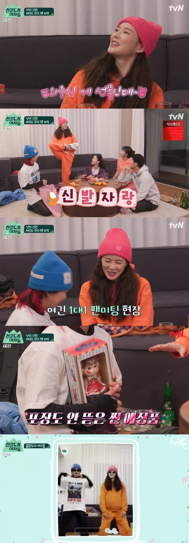 먼저 아이키는 '산꾼즈'에게 귀여운 슬리퍼를 선물했고, 이선빈은 "연우랑 커플로 하시라고 직접 만들었다"라며 목걸이로 화답했다.