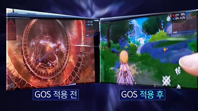갤럭시 S22를 사용하고 있는 시청자 도움을 받아 GOS 적용 유무에 따른 GPU 수치 변화를 비교해봤습니다. 스마트폰 성능을 측정하는 앱(벤치마크)을 삼성전자 갤럭시 S22에서 실행해봤습니다. 그래픽 장치 GPU 수치가 30%까지 올라갑니다. 이번엔 고사양, 고화질 게임을 실행해봤습니다. GPU 수치가 5% 안팎에서 멈춥니다. 게임을 할 때 스마트폰을 최적화하는 GOS 앱이 자동 실행돼 그래픽 성능을 떨어뜨린 겁니다.