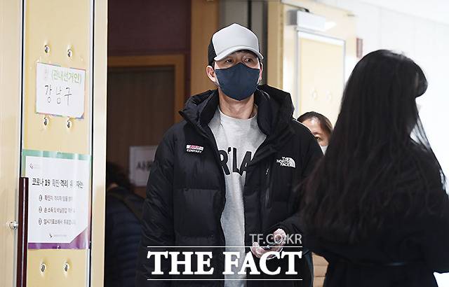 '회사 점퍼' 입고 사전투표 하는 정우성 [TF사진관]