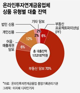 온투업 중앙기록관리기관에 따르면 지난 5일 현재 37개 등록업체 가운데 27곳이 개인신용대출을 아예 취급하지 않는 것으로 나타났다. 총 대출잔액 1조2157억원 중 70%는 부동산 담보대출에 쏠려 있었고, 개인신용대출은 12%에 그친다.