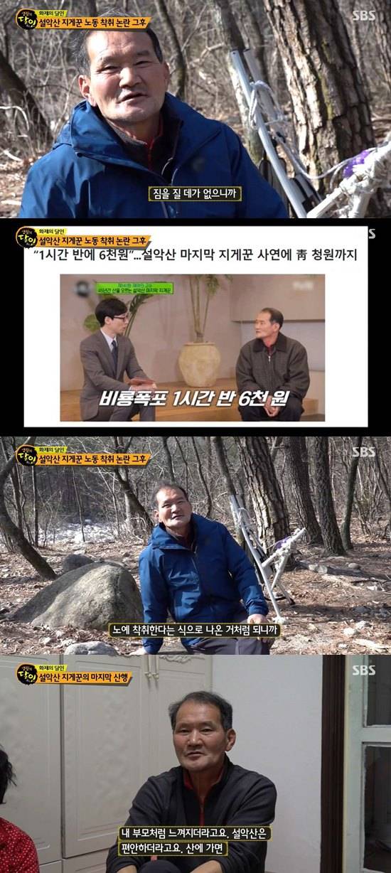 '유퀴즈'에 출연했던 설악산 지게꾼 임기종 씨가 일자리를 잃은 소식이 전해졌다.