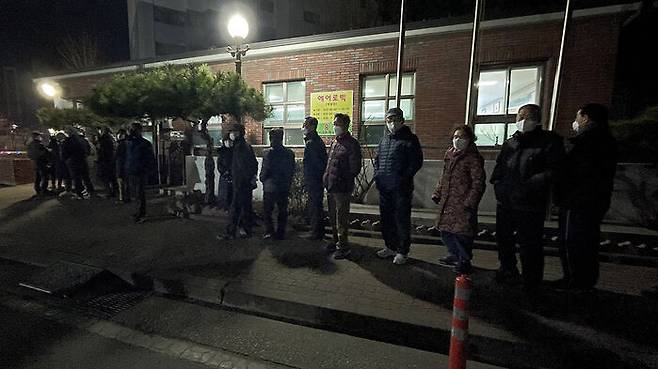 수성구 사월보성 2차 아파트 관리사무소에 마련된 고산3동 제5투표소에는 오전 5시 30분쯤부터 유권자들이 모여들기 시작해 투표가 시작된 오전 6시쯤에는 100여 명이 줄을 섰습니다.