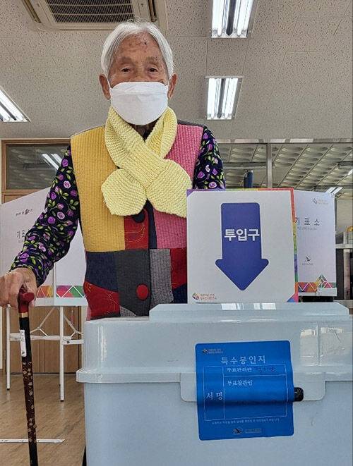 이 할머니는 신분 확인 절차를 마친 뒤 기표 후 투표함에 용지를 집어넣는 등 별다른 문제 없이 주권을 행사했습니다.