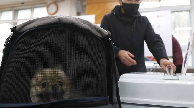 [현장] 아기도, 강아지도 "함께 왔어요!"..투표소 찾은 귀요미들