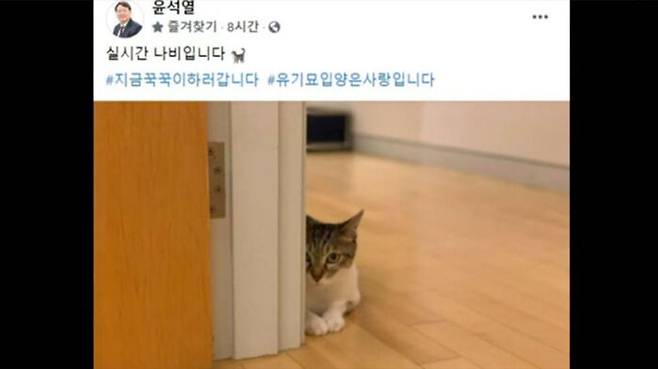 또 다른 반려동물로는 유기묘였던 '나비'가 있는데, 윤 당선인은 나비를 소개하는 글 아래 "유기묘 입양은 사랑입니다"라는 해시태그를 달아 유기동물 입양 장려에도 힘써 왔습니다.
