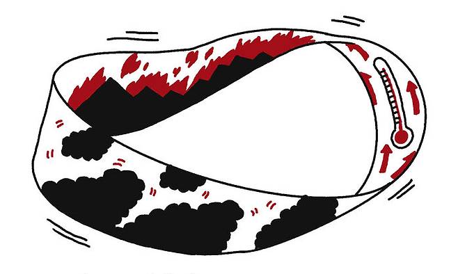 엄청난 양의 탄소가 나오는 탓에 산불은 또 다른 기후변화의 원인이 될 수 있어요. 앞에서도 이야기했지만 과거보다 탄소 배출이 늘어나면서 지구의 온도가 높아졌고, 그 영향을 받아 산불이 자주 생기고 있습니다. 그런데 이 산불이 엄청난 이산화탄소를 배출하니까 다시 또 지구의 온도를 높일 수 있거든요. 탄소 배출 증가 → 지구 기온 상승 → 산불 증가 → 또 탄소 배출 증가 → 또 지구 기온 상승 → 또 산불 증가... 끝도 없는 악순환이 반복될 수 있다는 거죠.