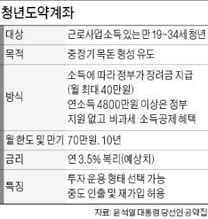 금융권 관계자는 “취업하지 못한 취업준비생이나 만 34세를 갓 넘긴 중·저소득층 청년들이 가입 대상에서 배제된 데 대해서도 벌써부터 ‘갑론을박’이 빚어지고 있다”며 “지원 혜택이 큰 만큼 이 같은 형평성 논란이 확대될 가능성도 적지 않을 것”이라고 했다.