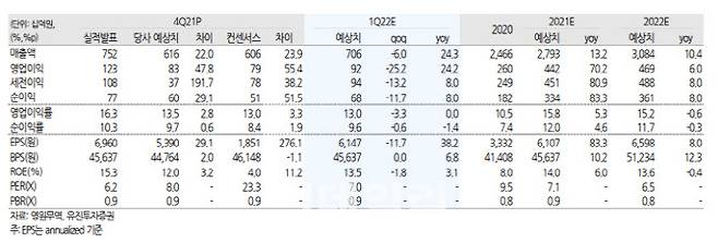 [이데일리 김인경 기자] 유진투자증권은 14일 영원무역(111770)이 4분기 양호한 성적을 낸 가운데 리오프닝에 맞춰 실적 개선세를 이어갈 것으로 기대했다. 이에 목표주가를 기존 6만5000원에서 7만원으로 7.69% 상향했다. 투자의견은 ‘매수’를 유지했다.