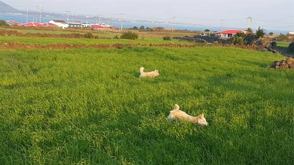 | ▲ 보리밭을 뛰노는 개들 |