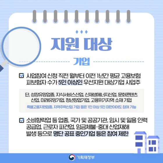 * 특별고용지원업종, 지역주력산업 기업 등은 1인 이상 5인 미만이어도 참여 가능