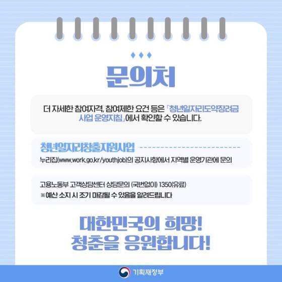 - 고용노동부 고객상담센터 상담문의 국번없이 ☎1350(유료)