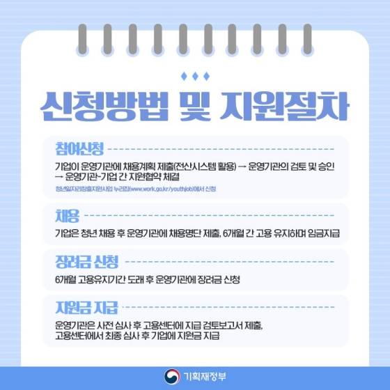 기업은 청년 채용 후 운영기관에 채용 명단 제출, 6개월 간 고용 유지하며 임금 지급