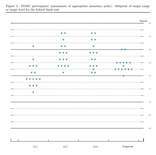 오늘 나온 내용의 골자는 3월 기준금리 인상 0.25%가 위원들의 만장일치로 결정됐다는 점, 연준 위원들이 올해 7번의 금리 인상을 전망하고 있다는 점, 그리고 다음 FOMC에서 양적 긴축이 시작될 수 있다는 점 정도입니다.