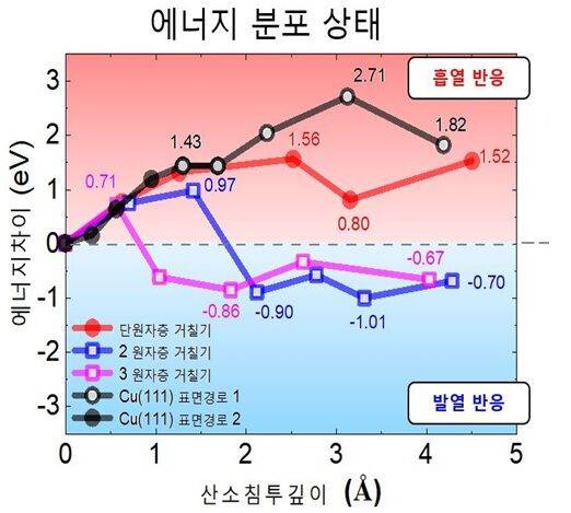 연구팀은 이번 연구를 통해 기존의 거칠기에선 발열 반응이던 구리 산화가 원자 1층 수준의 거칠기가 되면 흡열 반응으로 바뀌어 자연 상태에선 산화가 일어나지 않다는 것을 세계 최초로 규명했다.
